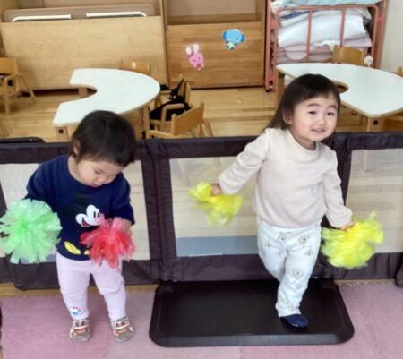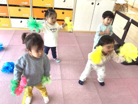 みんなの好きな曲を流すと両手にポンポンを持ちかわいく踊ってくれました🎵