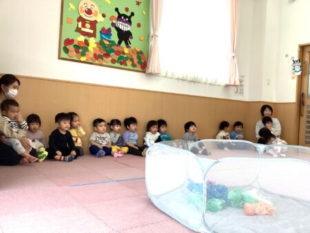 ボールあそびでは、ボールを大事そうに抱えて歩きまわったり、保育士に「はいっ!」と渡しにきてくれ、一緒にコロコロ~と追いかけたりして、楽しんでいます🥎✨