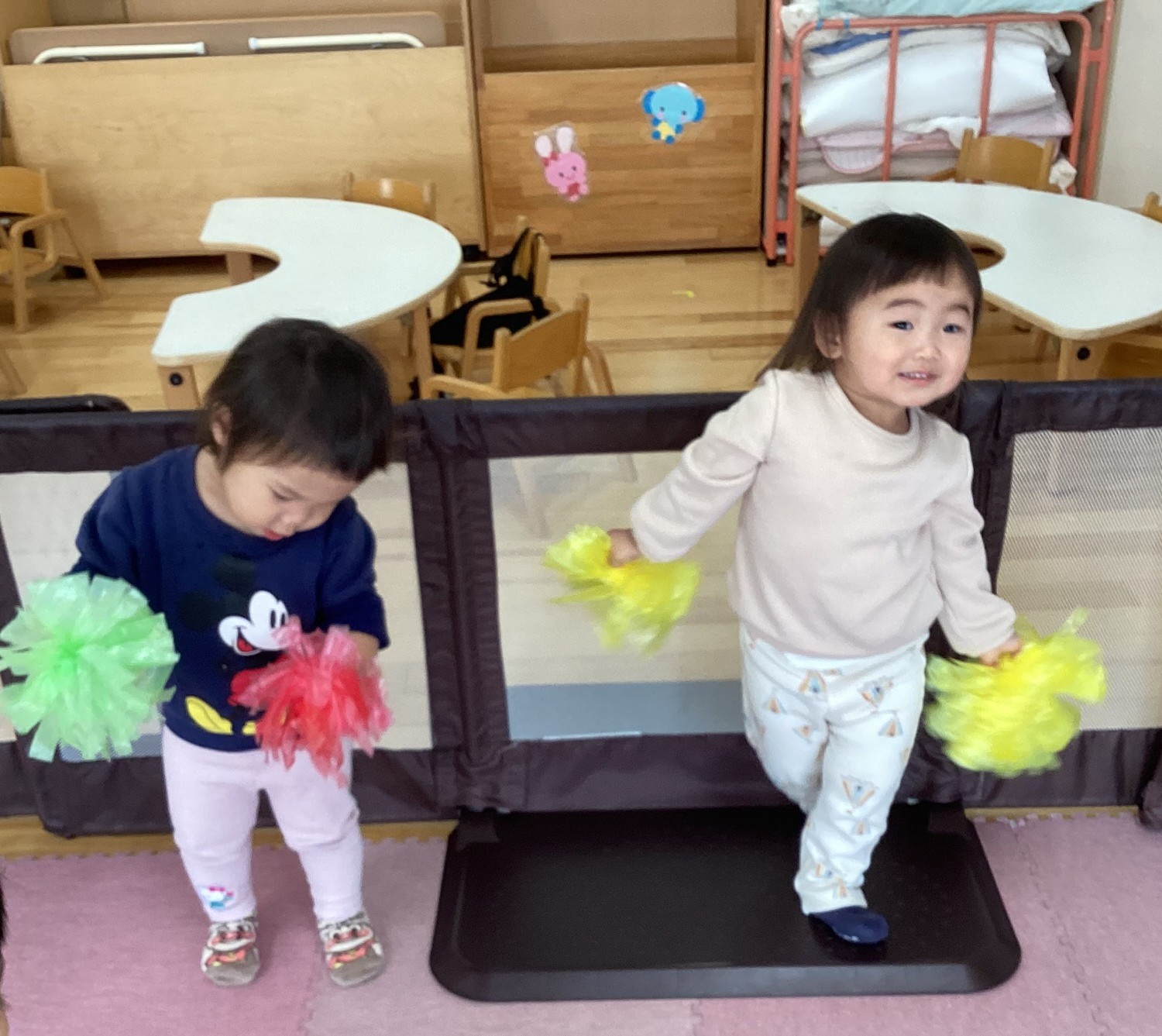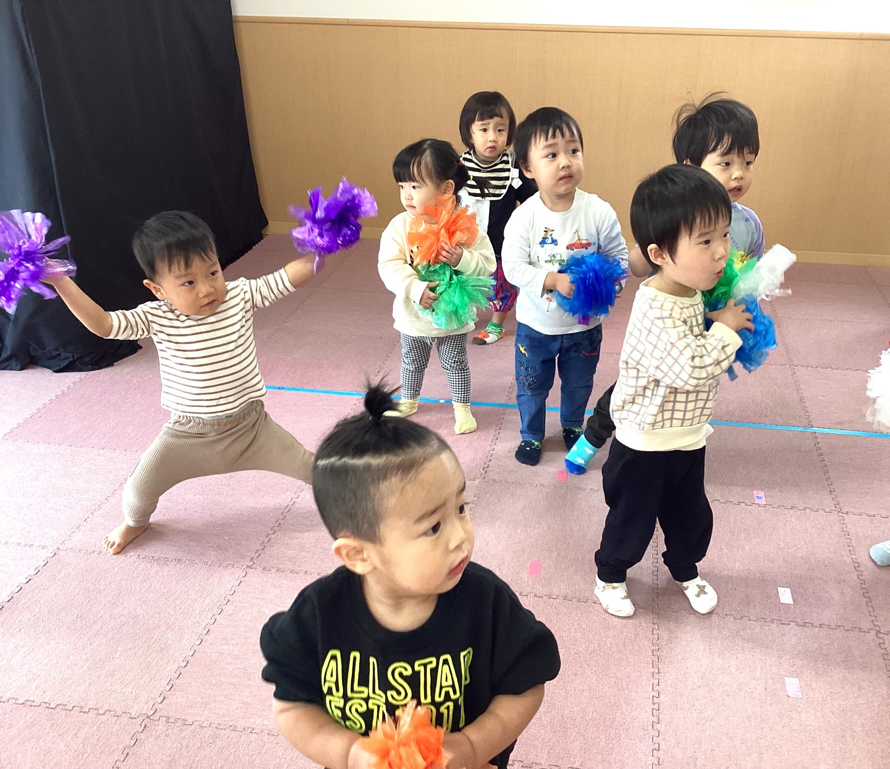 みんなの好きな曲を流すと両手にポンポンを持ちかわいく踊ってくれました🎵