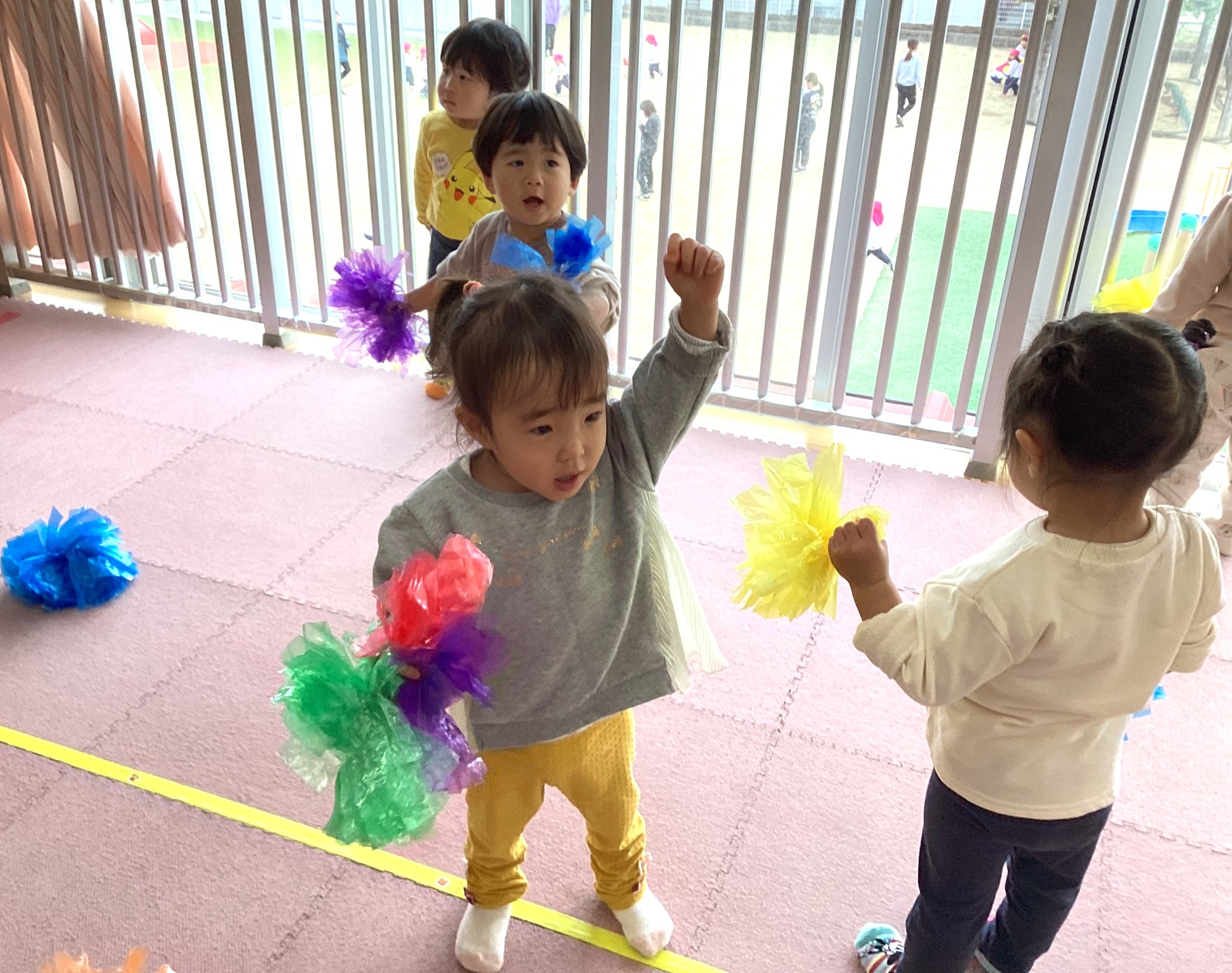 別の日には、すずらんテープでポンポンをつくり、ダンスをしました✨🥰