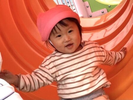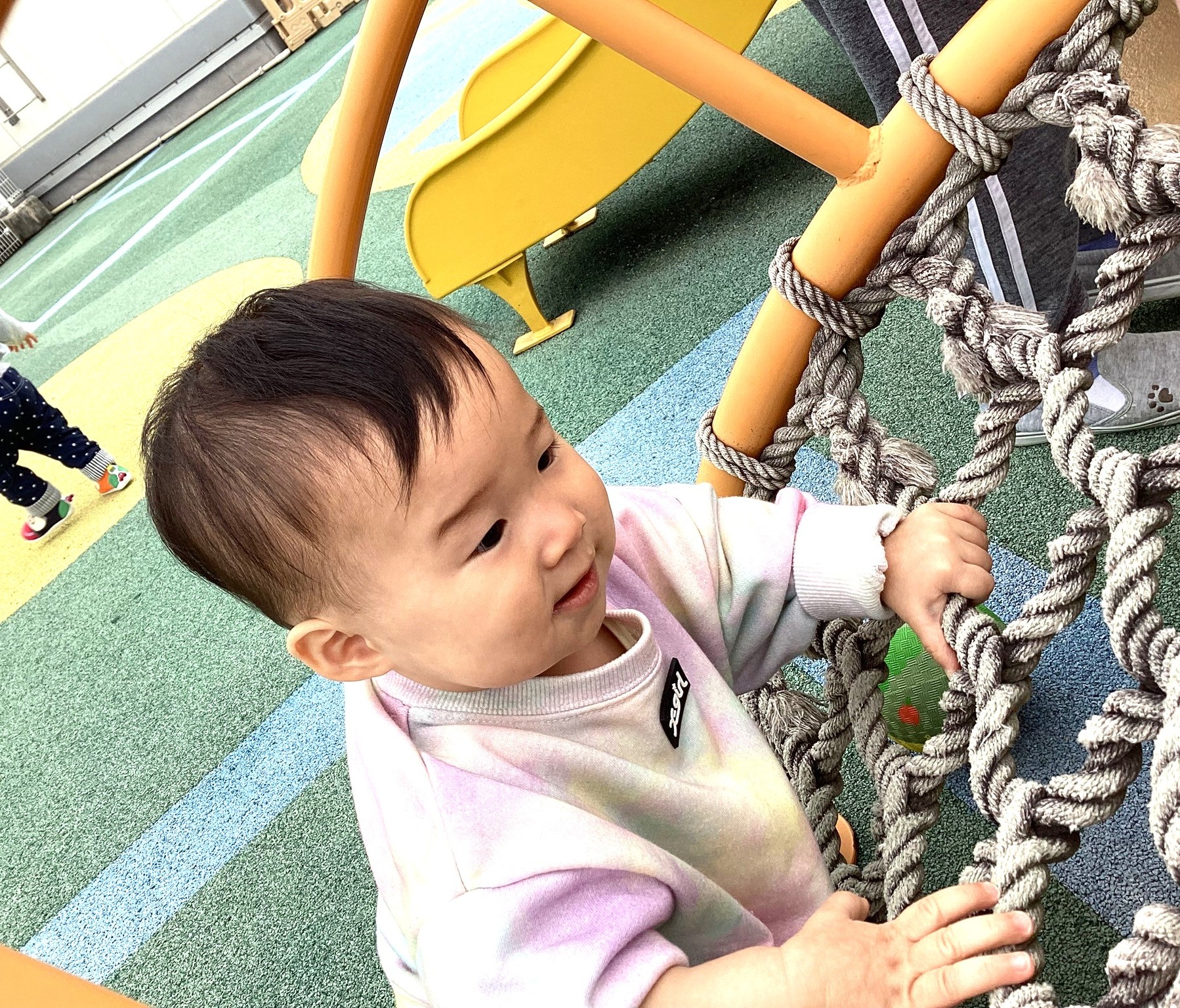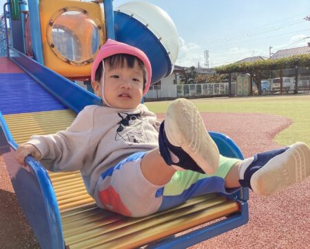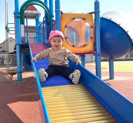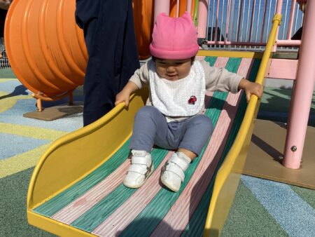 すべり台では、シューっとすべってきた時のニコニコ顔は、すごくうれしそうで、「もう一回いこ~!」と何回もチャレンジしています🥰