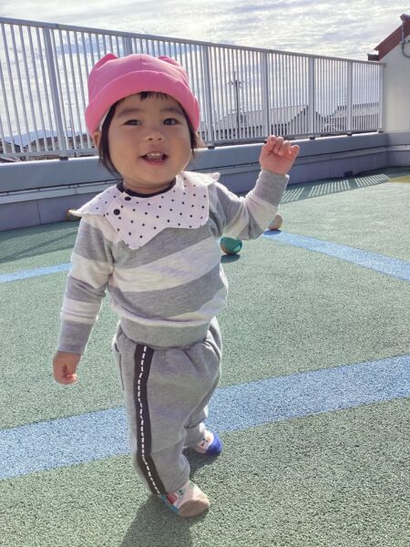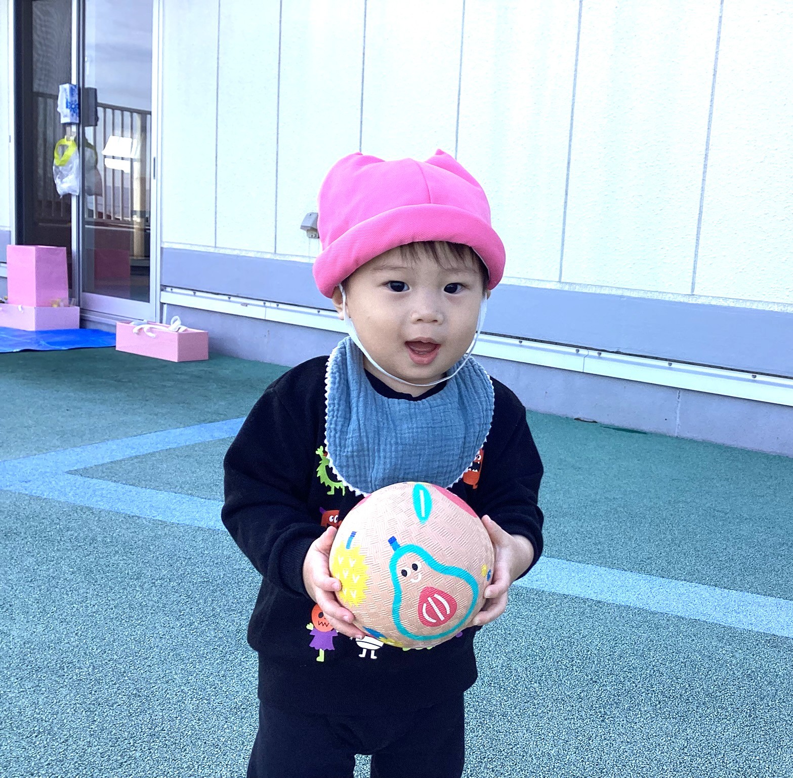 ボールあそびでは、ボールを大事そうに抱えて歩きまわったり、保育士に「はいっ!」と渡しにきてくれ、一緒にコロコロ~と追いかけたりして、楽しんでいます🥎✨
