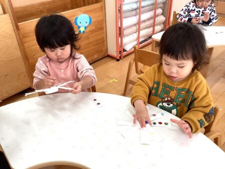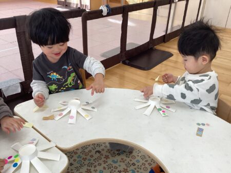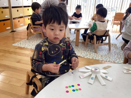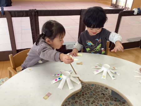 「おほしさま~☆キラキラ~✨」とおしゃべりを楽しむ子や、黙々とシールを貼る子など、みんなそれぞれにコマ作りを楽しんでいました🥰