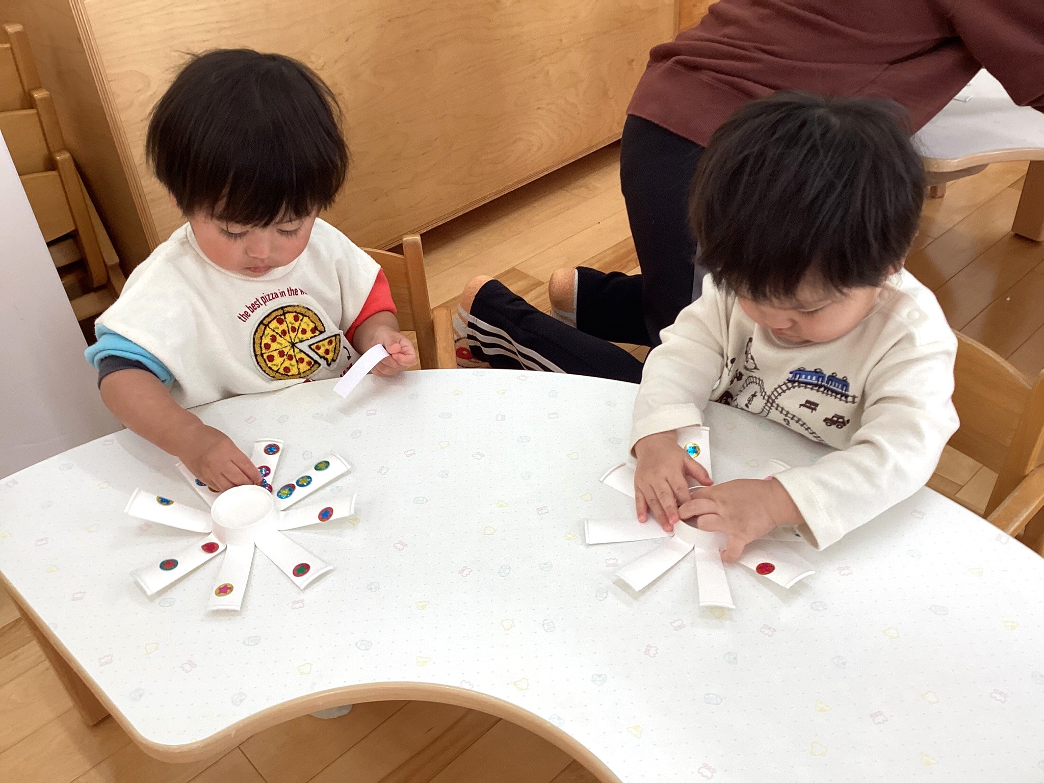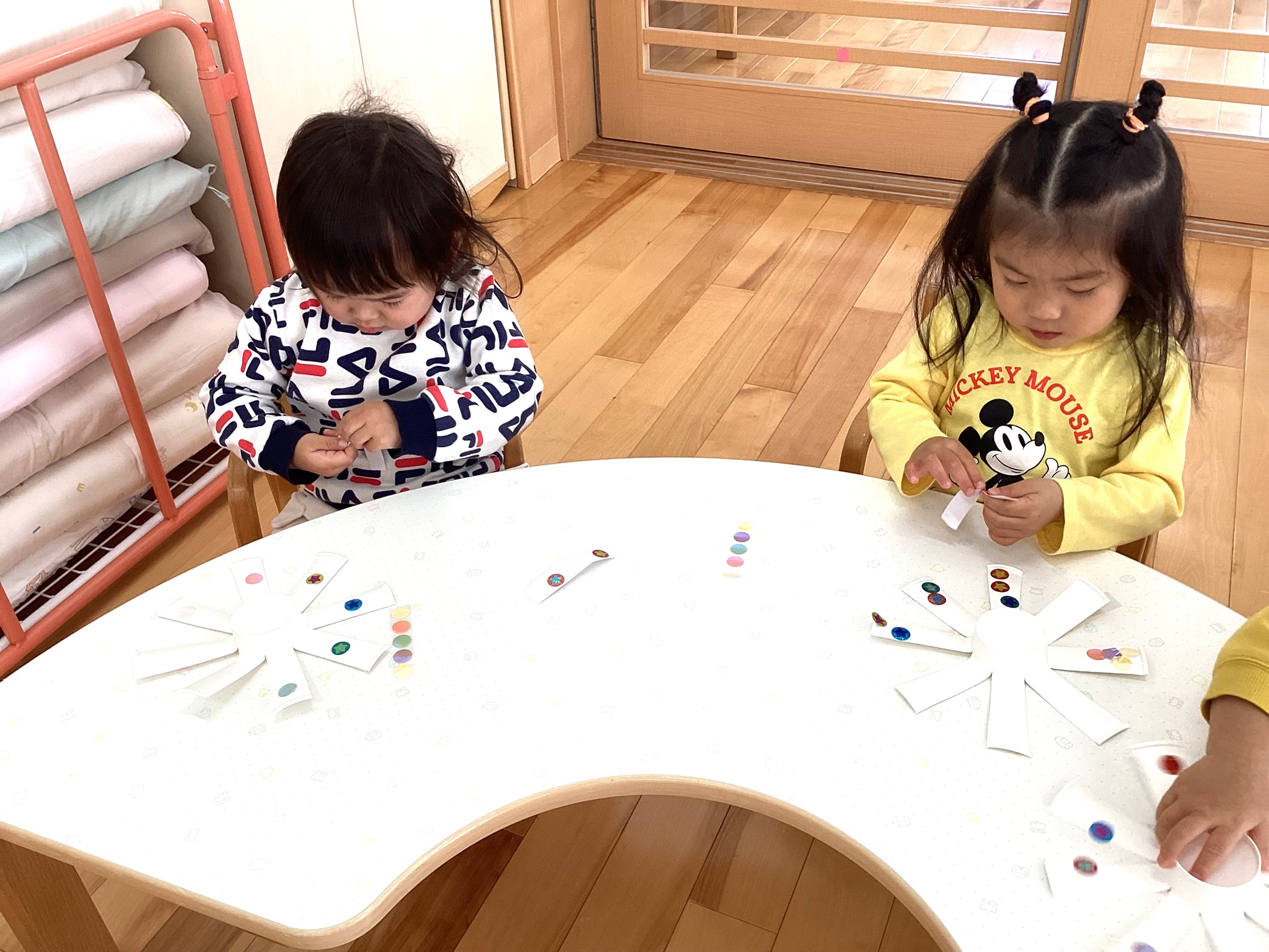 「おほしさま~☆キラキラ~✨」とおしゃべりを楽しむ子や、黙々とシールを貼る子など、みんなそれぞれにコマ作りを楽しんでいました🥰