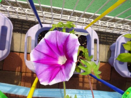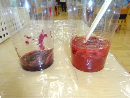 5月に種をまいたアサガオを使って染色あそびをしました🥰