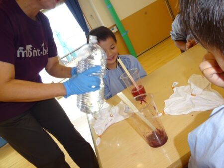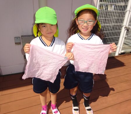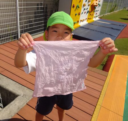 混ぜるのも楽しそうです!!そしていよいよハンカチ投入😄🎶