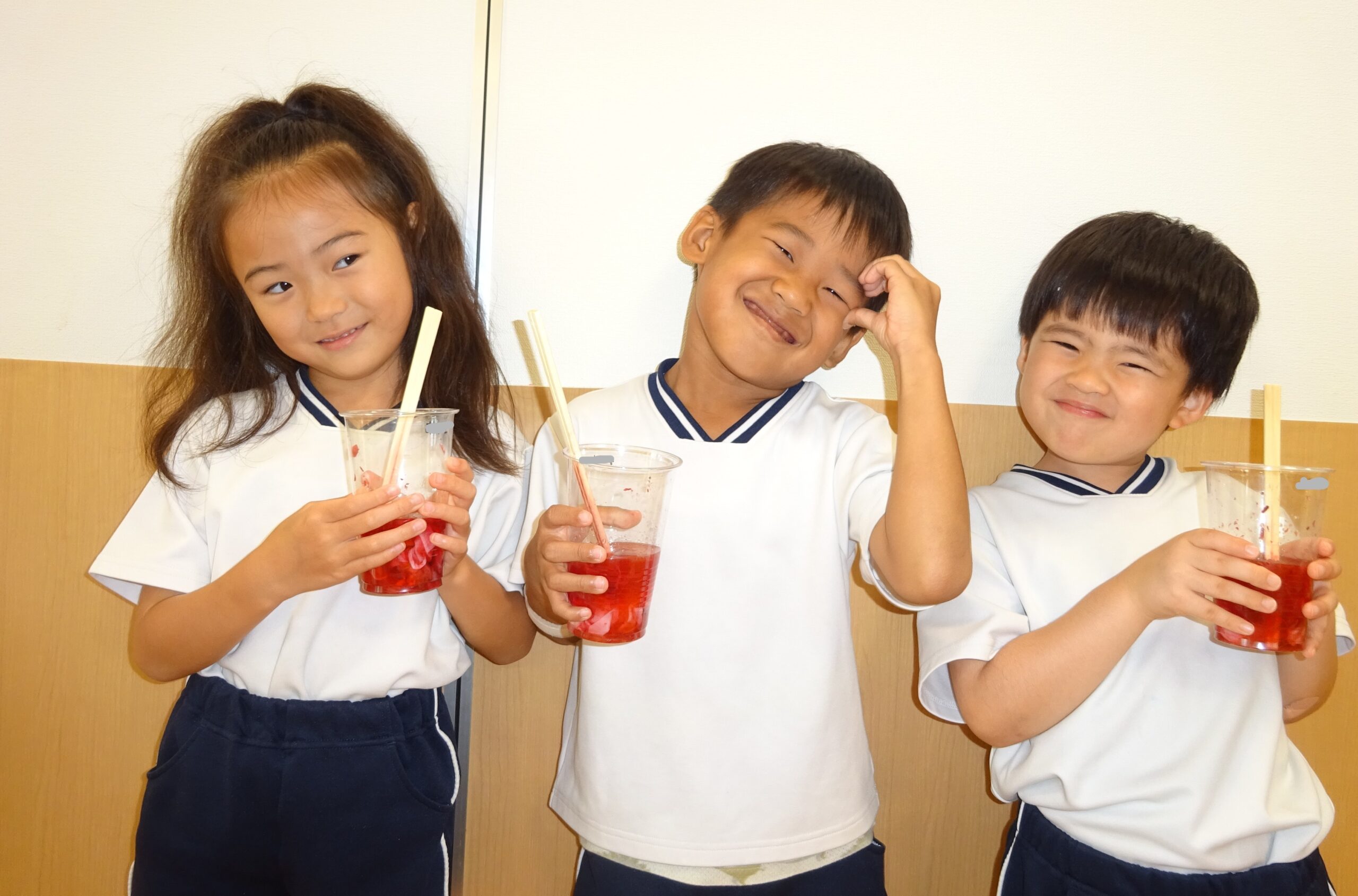 「うわぁぁぁ~!ぶどうジュースみたい!!」、「いちごジュースにも見える!」