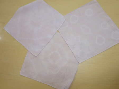 ゴムの縛り方、花のつぶし方により、ひとりひとりの模様がちがいます✨☺️