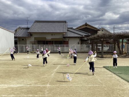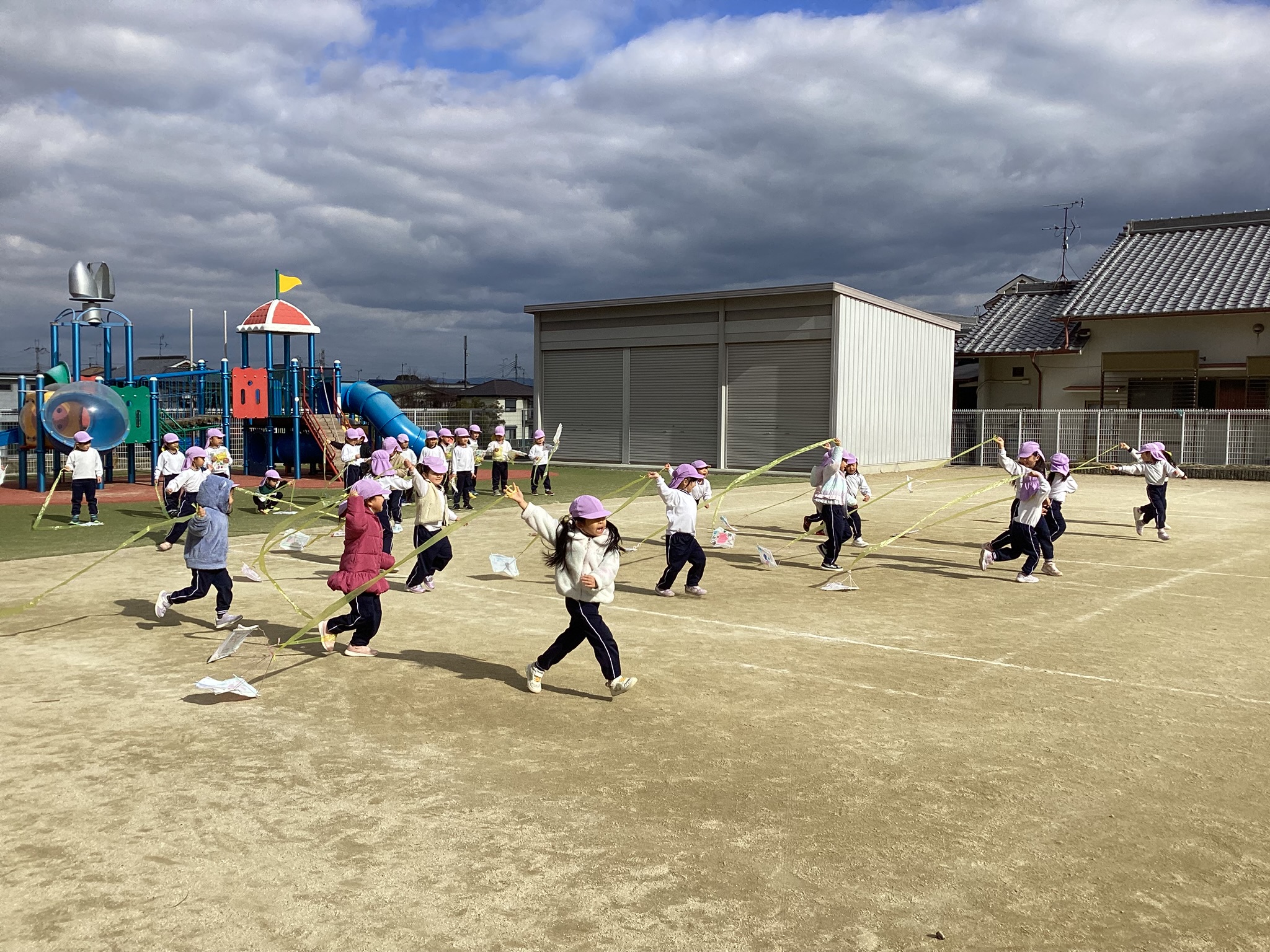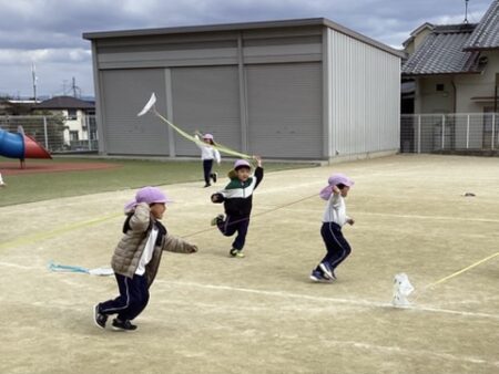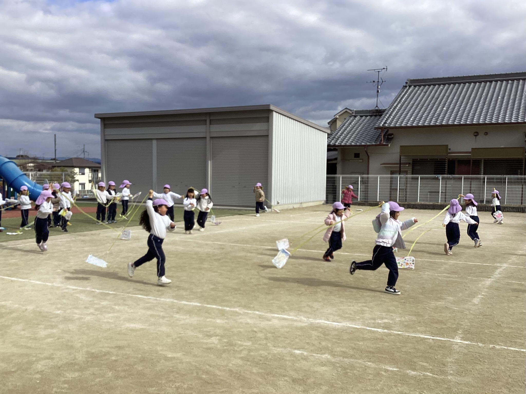 TOP > お知らせ > 凧揚げをしたよ✨藤組 お知らせ 凧揚げをしたよ✨藤組 3学期がはじまり、子ども達と一緒に凧を作りました😄 スーパーの袋にマジックで絵をいっぱい描きました🎵 子ども達は、出来上がった凧を持っていざ運動場に!!😆✨ ちょうどよい風がふいていたので子どもたちは、凧をもって風に乗って凧あげをしました🤗 凧を持ちながら一生懸命運動場を走って、楽しく凧揚げをしていました🌞 自分の凧が少しでも上に揚がると「やったー!!」、「凧あがった~!」と嬉しそうに笑顔を見せてくれていました✨ 2026.01.22